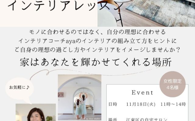 みなさん、こんにちはインテリアコーチayaです昨年より開催し、ご好評いただいているルームツアー付きインテリアレッスン9月からは新たにご自身の価値観から住空間を作っていただくヒントを得ていただける構成になりました!テーマは「家はあなたを輝かせ...